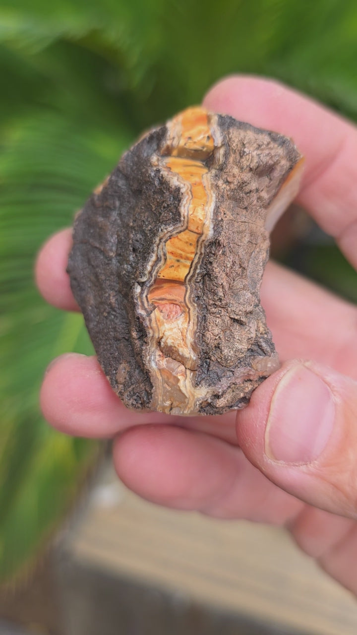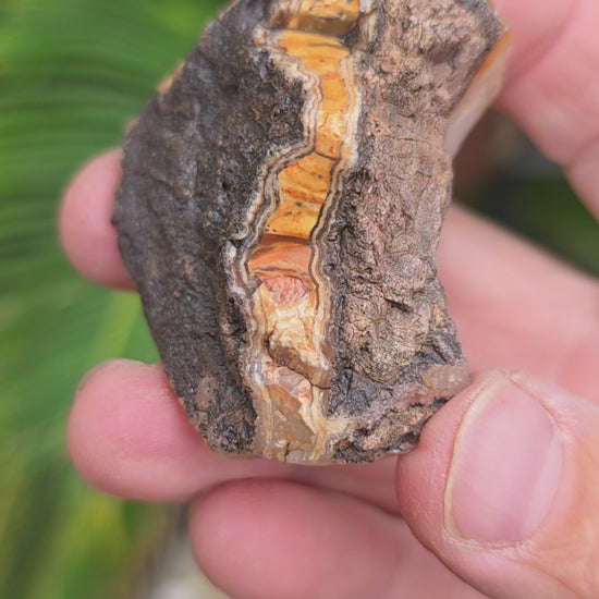 A beautiful SiO2 mineral containing agate, jasper, and chalcedony; this natural rock specimen was hand-collected in the Mule Mountains of Southern California, a desert range known for its rugged terrain and hidden mineral beauty. With its bold desert hues and textured natural surfaces, it displays both the rugged character and intricate complexity of the landscape where it formed.