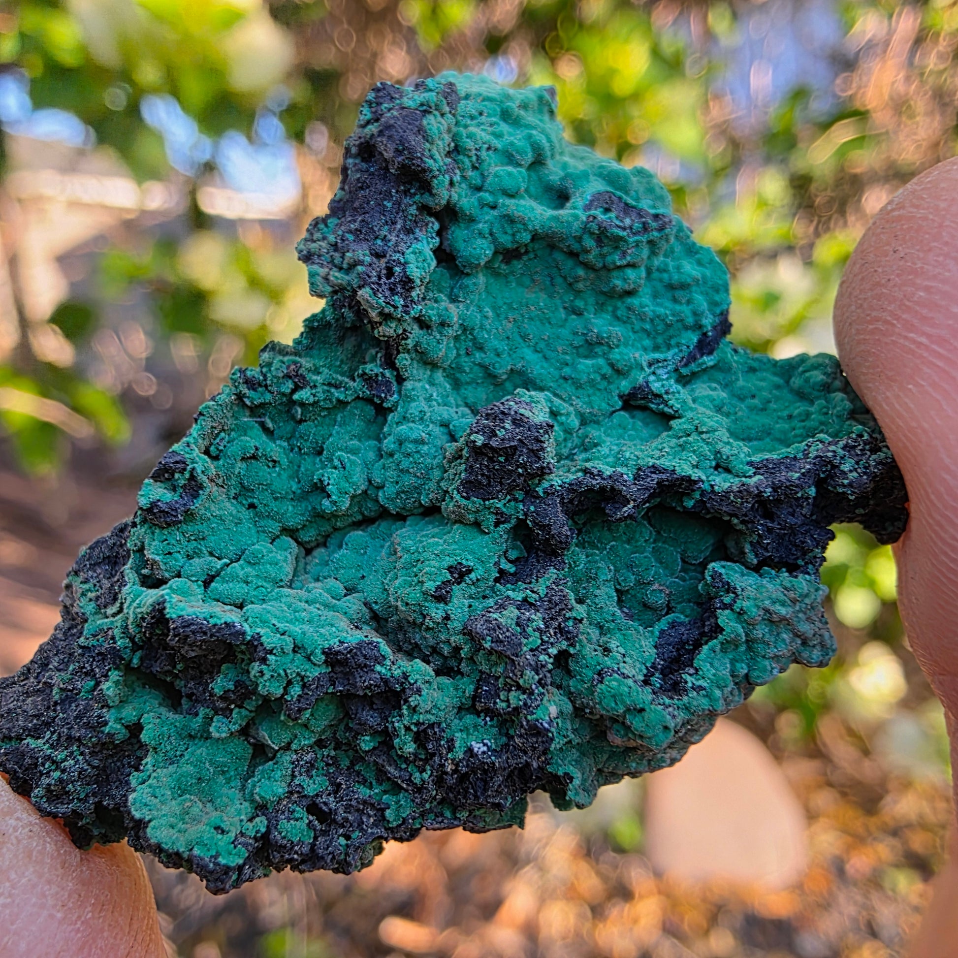 This specimen is completely natural and unaltered, showcasing the rich mineral-bearing character and desert charm of the region. Its bold green and black colors and rough texture make it a standout addition to any rock, mineral, or crystal collection.
