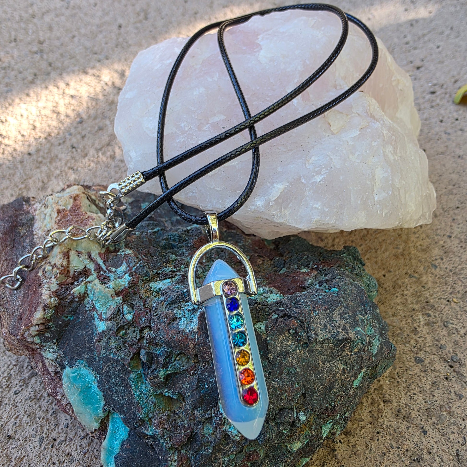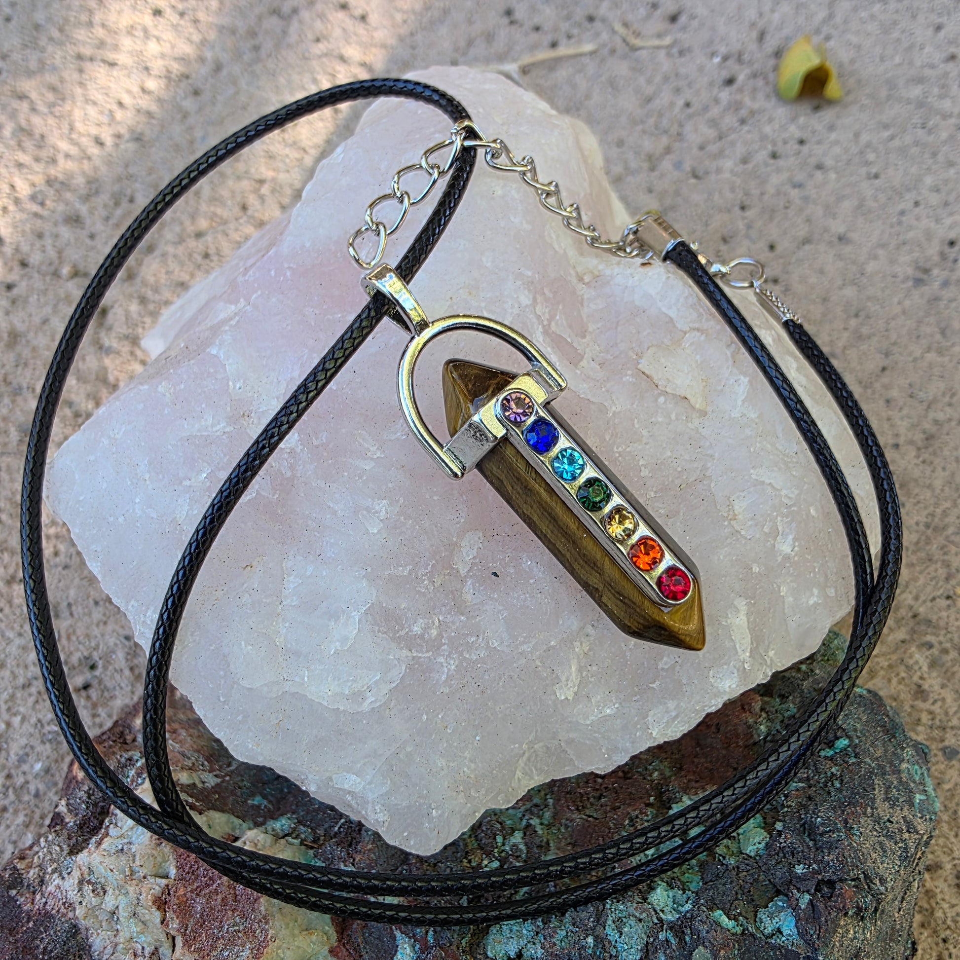 Rainbow Chakra Gemstone Necklace - Amethyst, Tiger's Eye, or Opalite Pendant