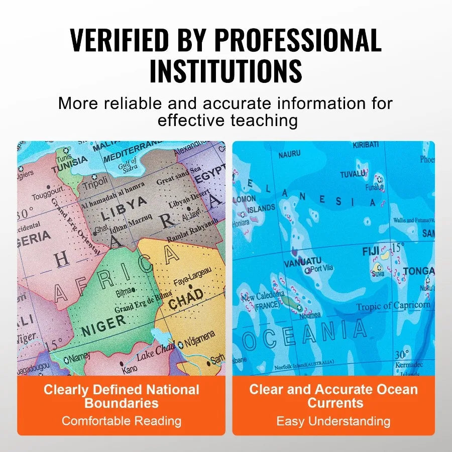 360° Spinning Design: Effortless full rotation allows easy access to any part of the globe for interactive viewing.