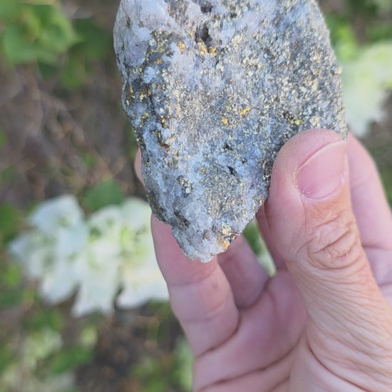 Rough Pyrite and Chalcopyrite on Quartz Rock Specimen from Morocco | Sparkly Fool's Gold