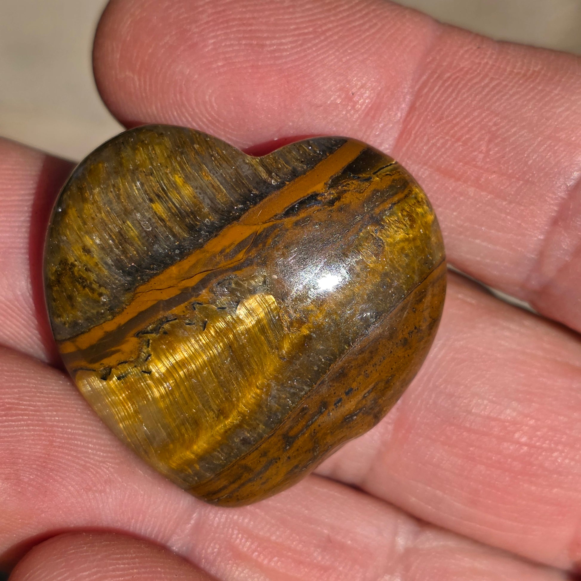 Tiger's Eye Heart, Shiny 1.25" Pocket Rock, Carved Gemstone