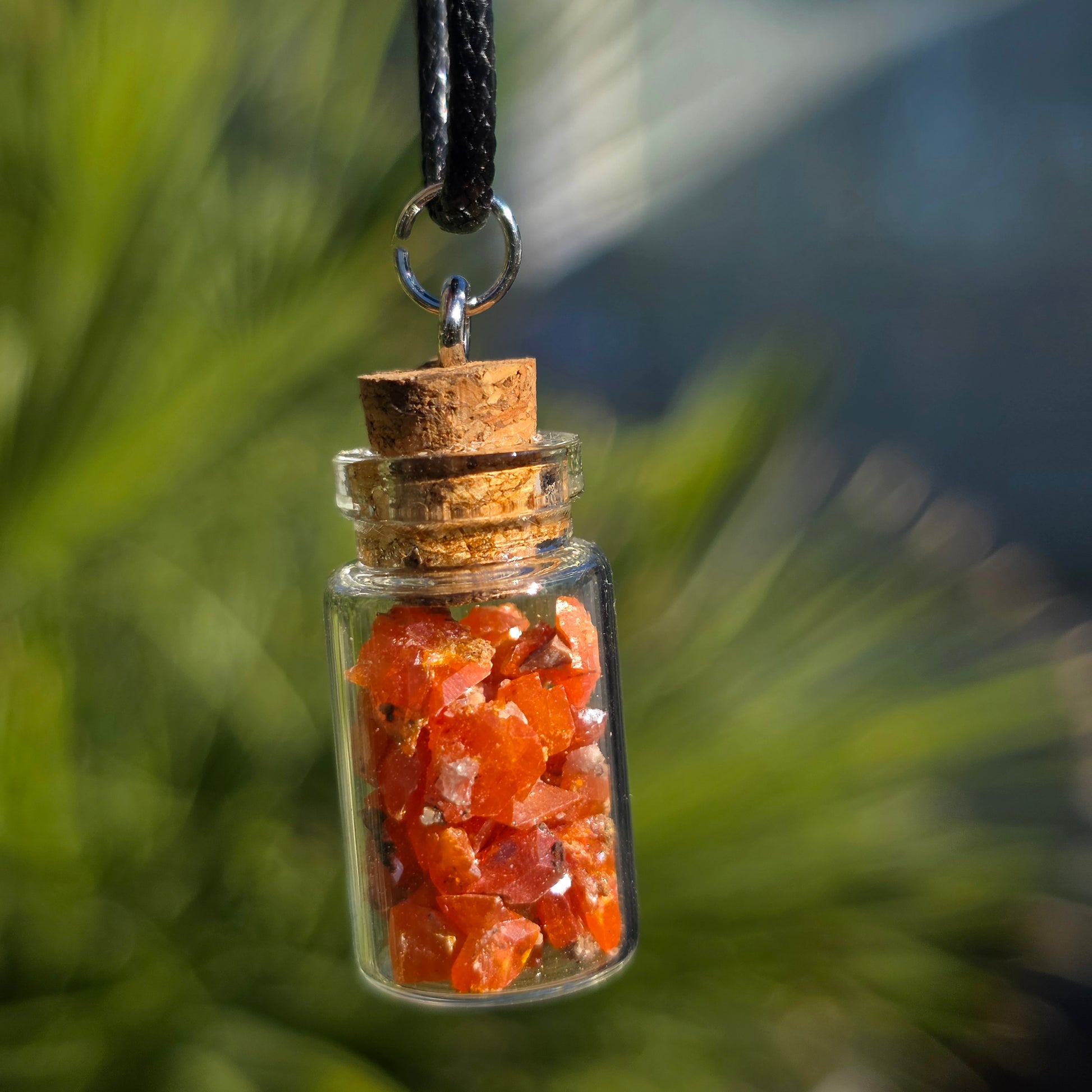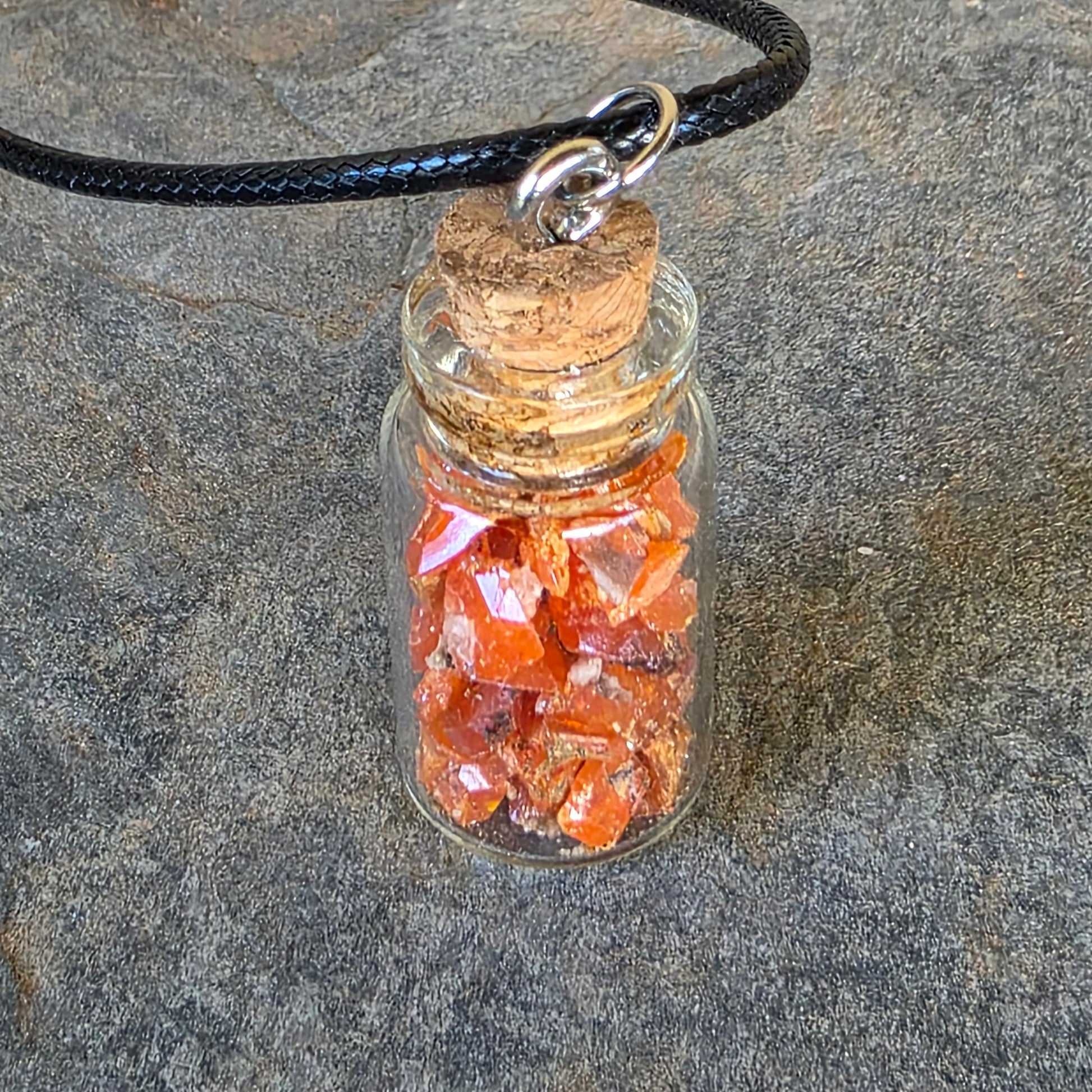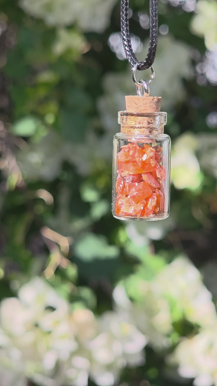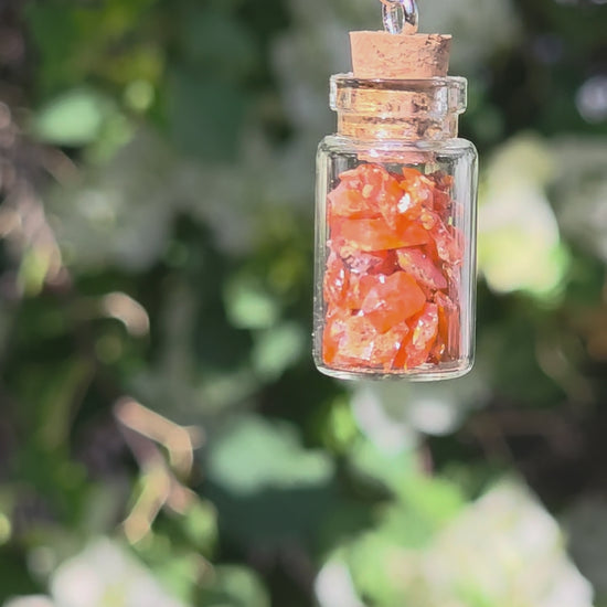 Wulfenite in Glass Jar Necklace | Raw Stones | Rock Pendant | Arizona Rockhound Geology Gift
